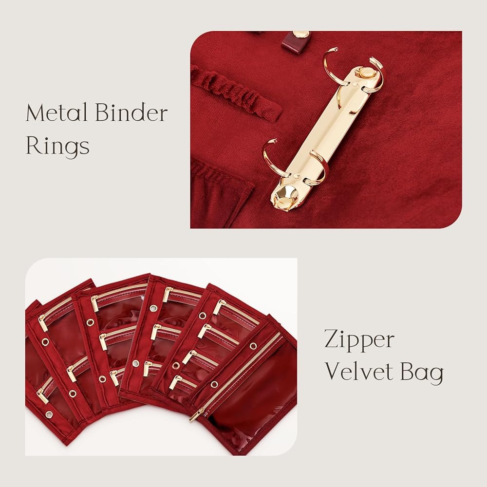 Premium Velvet Protection: Crafted with lush velvet, this jewelry case safeguards your delicate jewelry from tangles, scratches, and damage. Each velvet-lined page features secure zippers to prevent spills or damage—perfect for delicate everyday jewelry