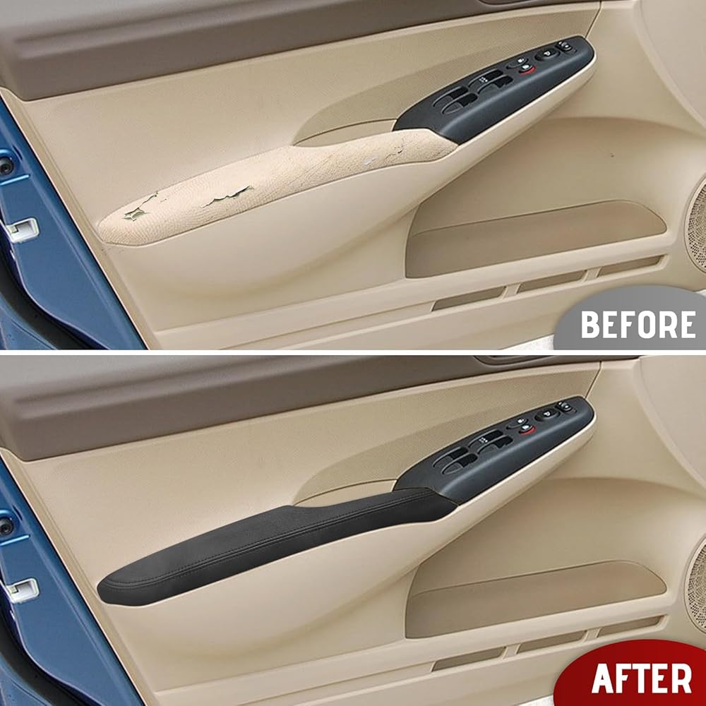 Compatible with Front Door Panels Armrest Cover for Honda Civic 2006-2011 Leather Left & Right Front Door Armrest Trim with Installation Tool 2PCS Black (Leather Only)