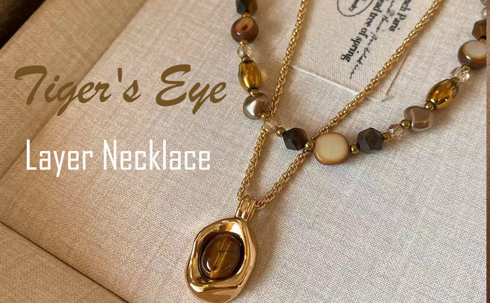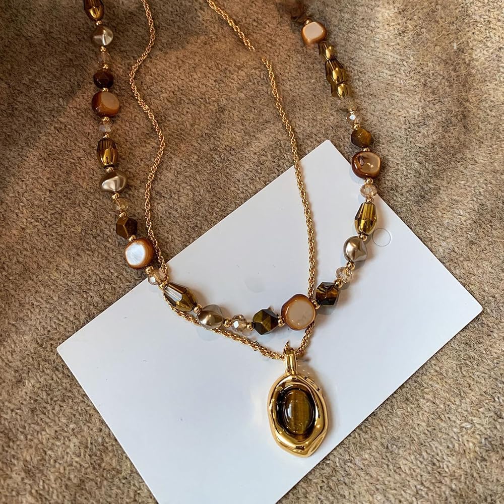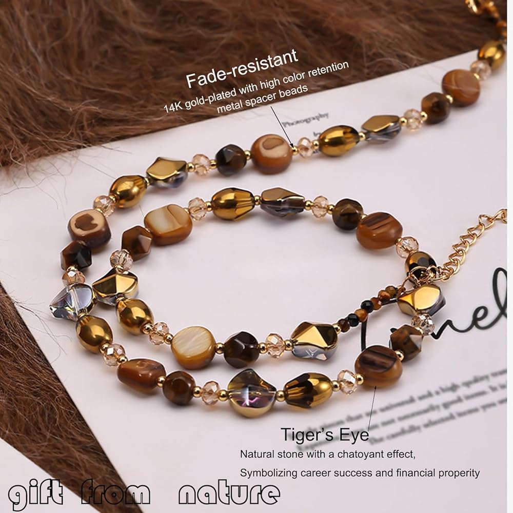 [Durable and Safe Material] – Crafted with premium crystal beads, resin accents, and authentic Tiger Eye stones, this layered necklace blends effortless elegance with bohemian flair. The hypoallergenic 14K gold-plated chain is lead-free, cadmium-free, and nickel-free, ensuring all-day comfort for sensitive skin.