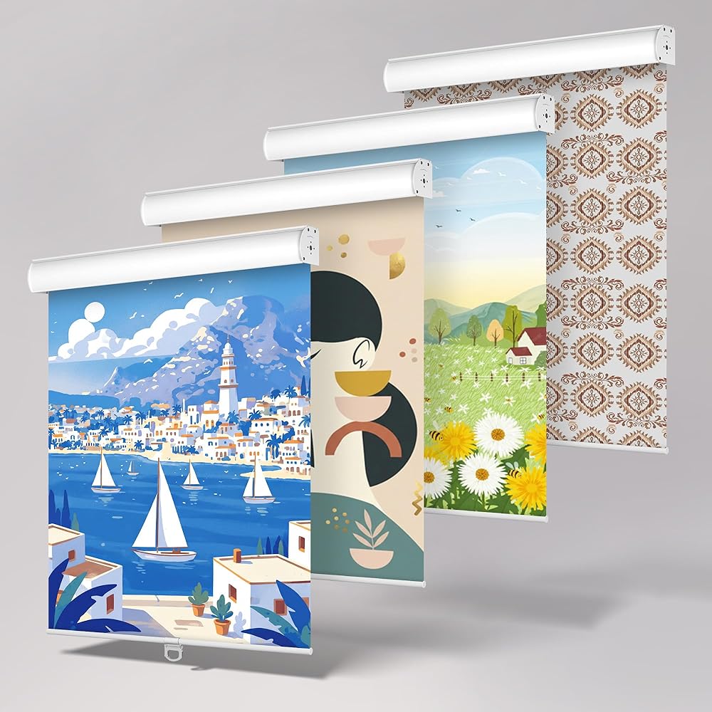 Fully Customizable Design & Personalization: Express your unique style effortlessly! Upload your own favorite photos, artworks, logos, or patterns to create one-of-a-kind window shades—perfect for adding a personal touch to your home or office. You can also choose from our carefully curated design library (in A+ page) for hassle-free customization. Every shade is made just for you, turning ordinary windows into stunning focal points.