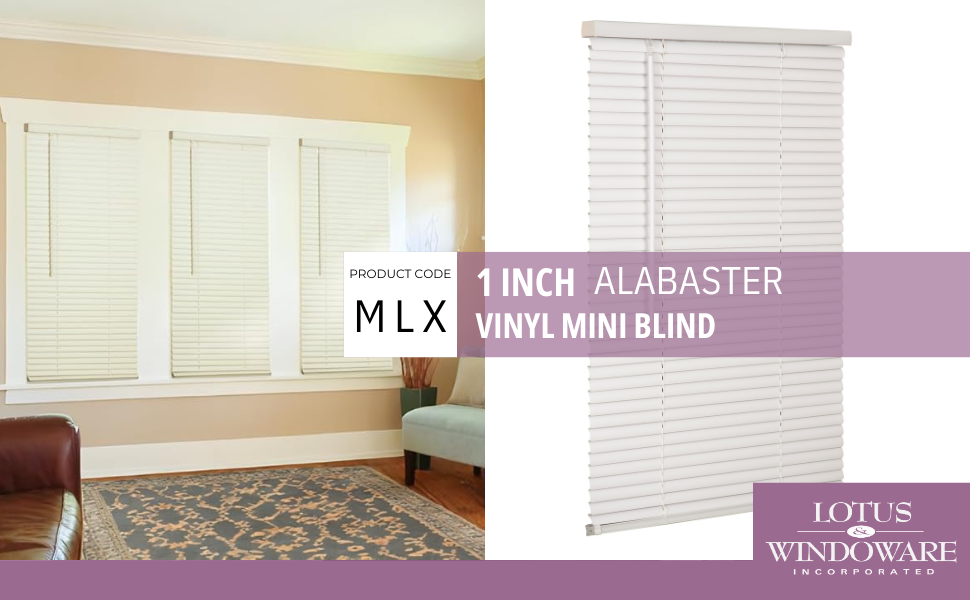 LOTUS & WINDOWARE Cordless 1" Vinyl Blind, 27" x 96", Alabaster,Smooth, Room Darkening, Horizontal Blinds for Living Room, Bedroom, Interior Door Windows