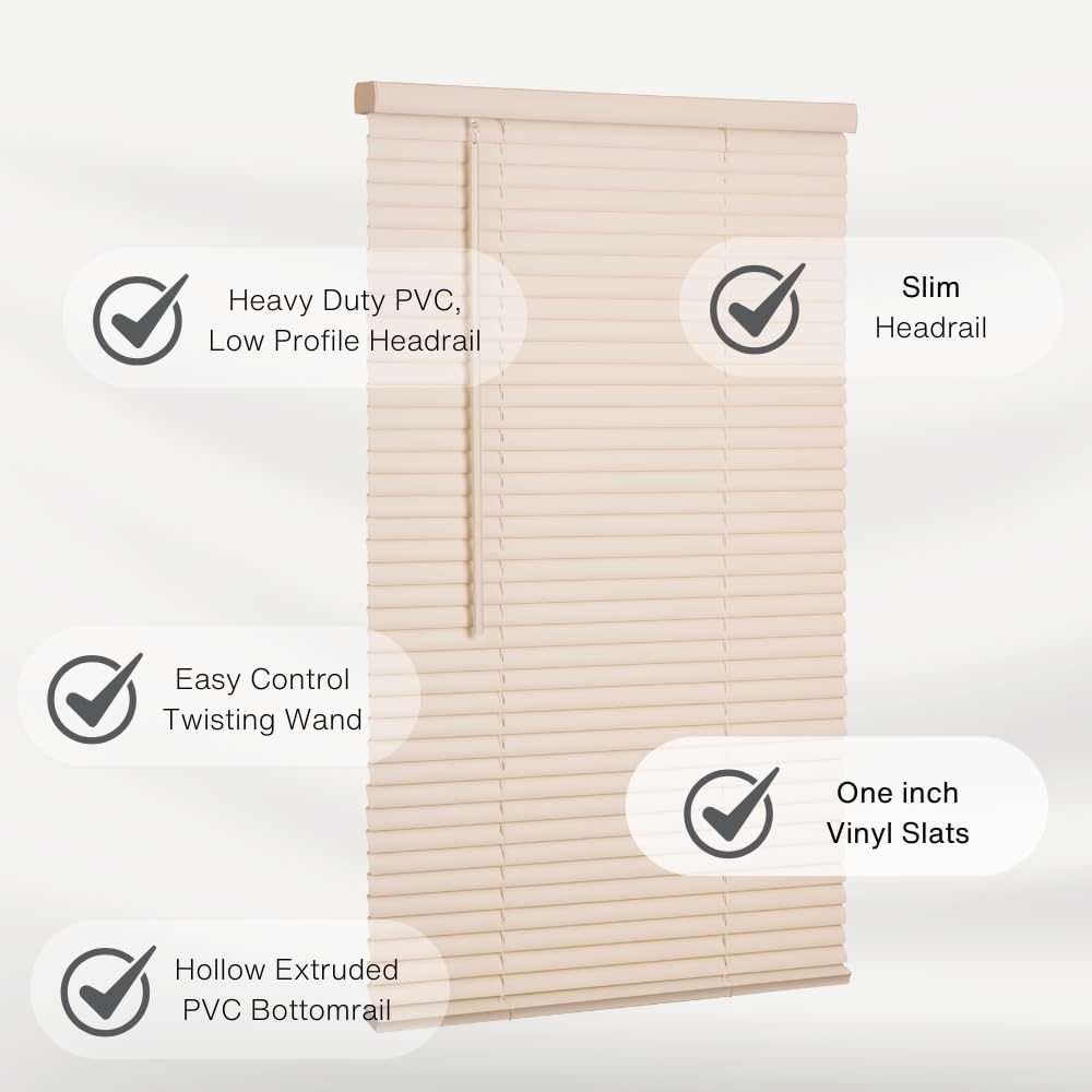 Includes Hardware & Instructions: Vinyl mini blinds add style and privacy to your home. Durable and affordable, they fit living rooms, bedrooms, kitchens, and offices. Ideal for home, door, camper, and RV blinds. Includes instructions and hardware for inside or outside mounting.