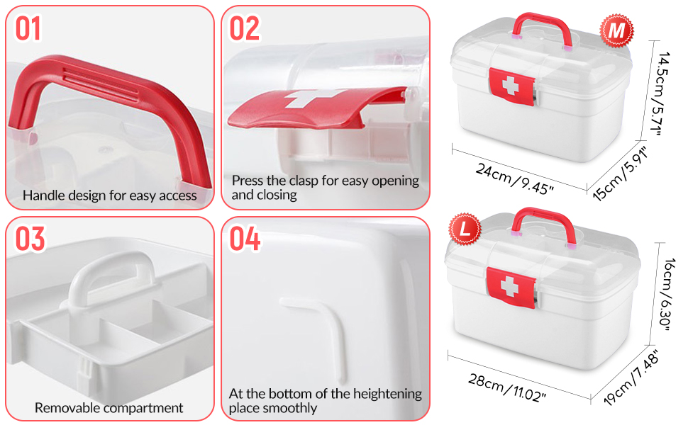 【Family Emergency Kit】The see-through lid which makes it easy for you to identify the contents easily even without opening the box. Additional partition helps segregate the equipment's and Medicines so you can find the correct medicine at the time of emergency.