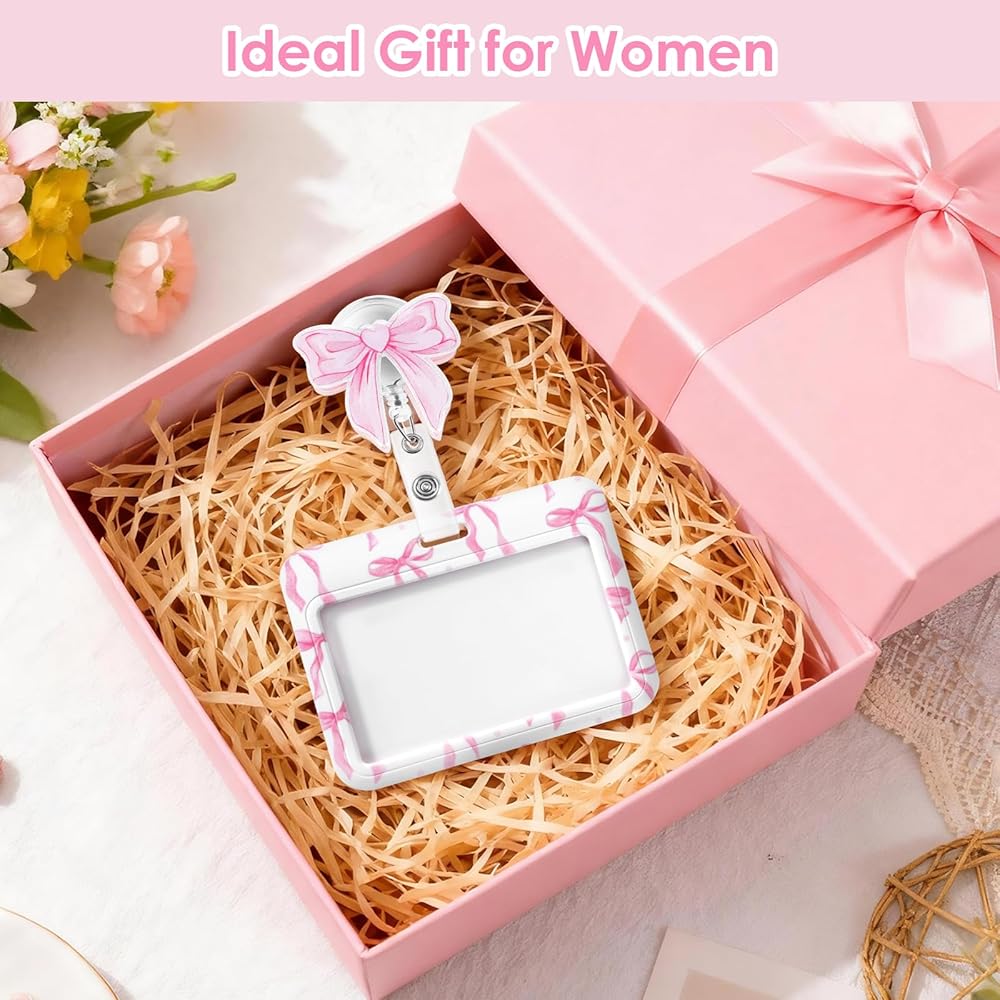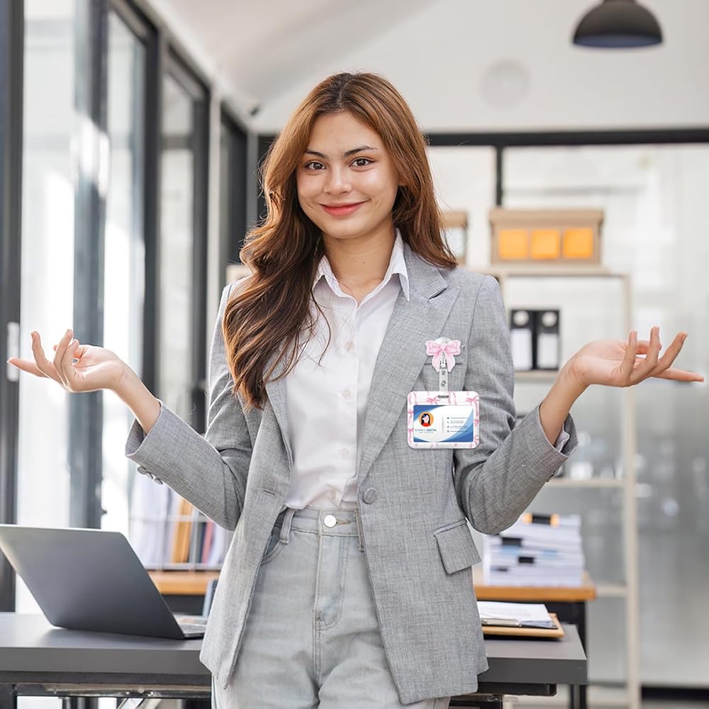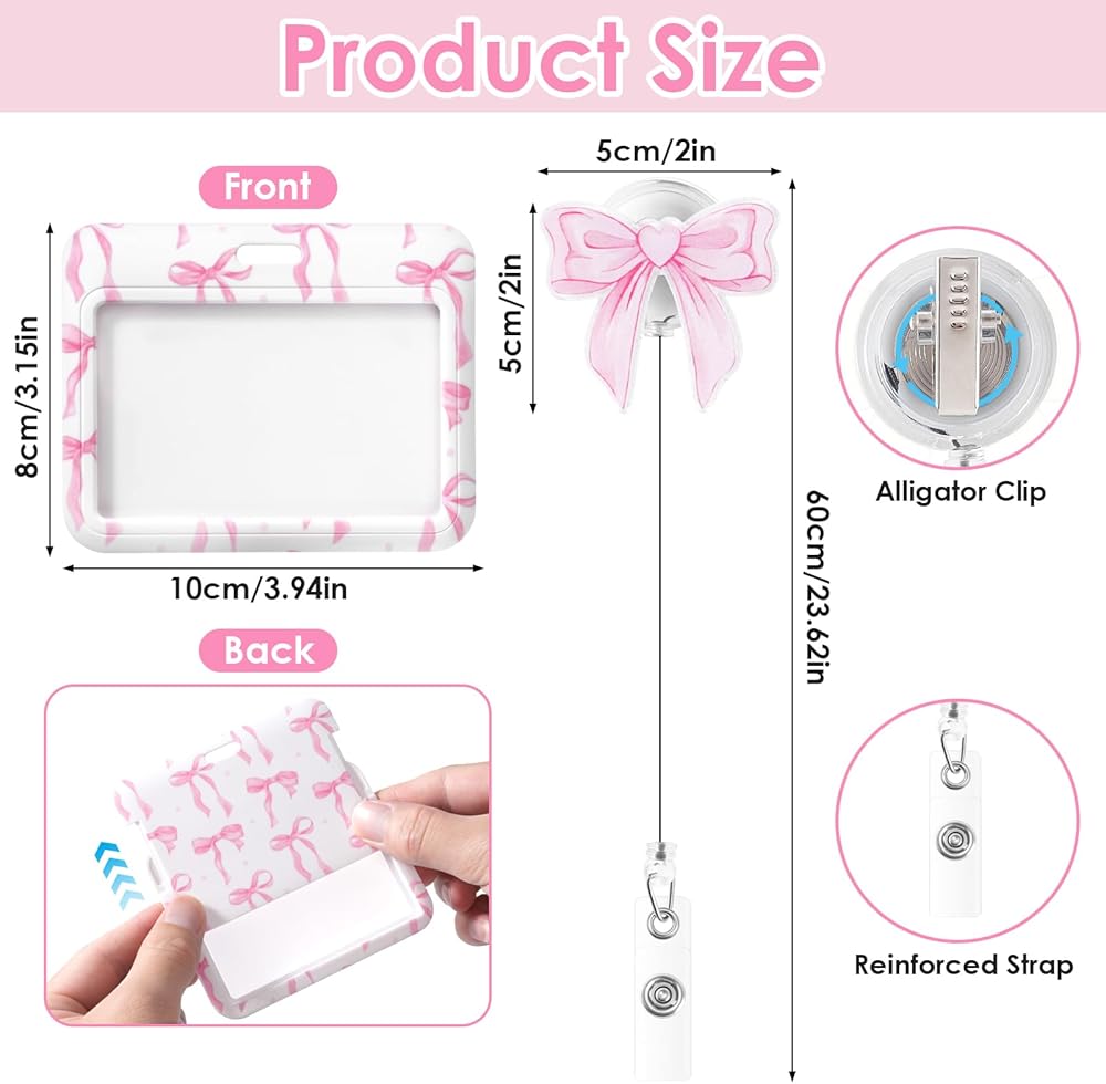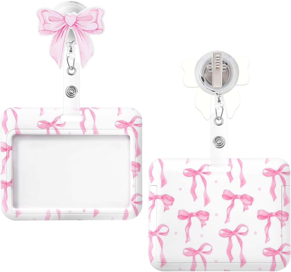 Item Type: Horizontal ID Badge Holder with Pink Bow Badge Reel