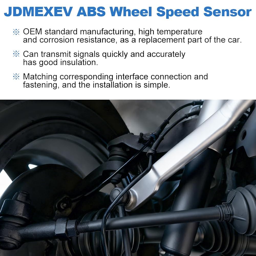 The ABS wheel speed sensors of JDMEXEV is made of precision alloy material and durable abs plastic, and it is inspected before delivery to ensure that the sensors can operate normally when the car is working, and it is used as a replacement part of the car