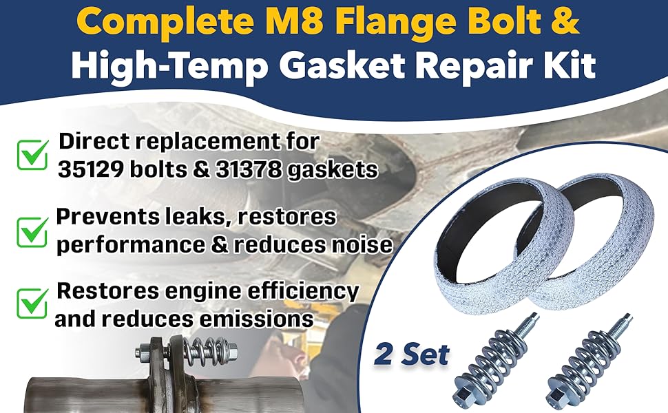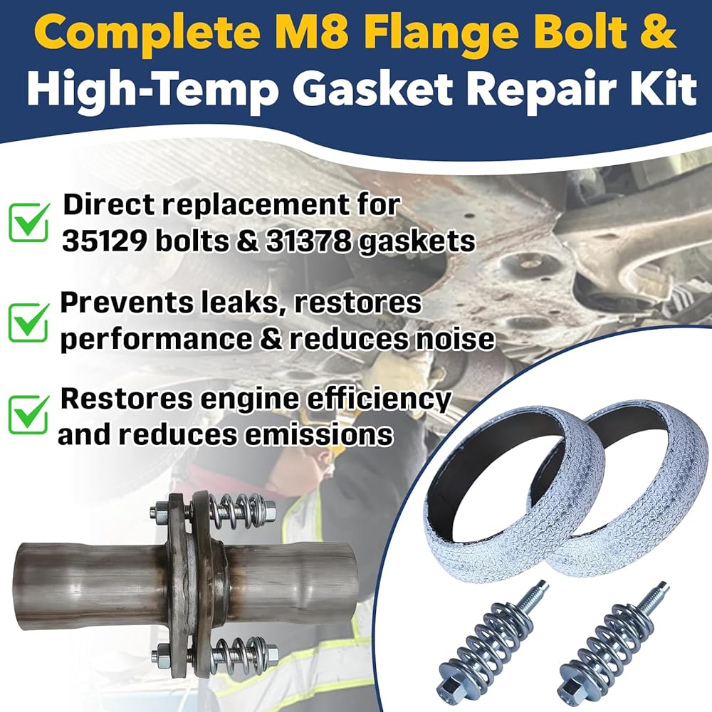 Broad Compatibility with Exhaust Systems:Designed as a replacement for common exhaust manifold hardware (matching specs of 35129 bolts and 31378 gaskets), it works with most standard exhaust systems for cars, trucks, and light vehicles