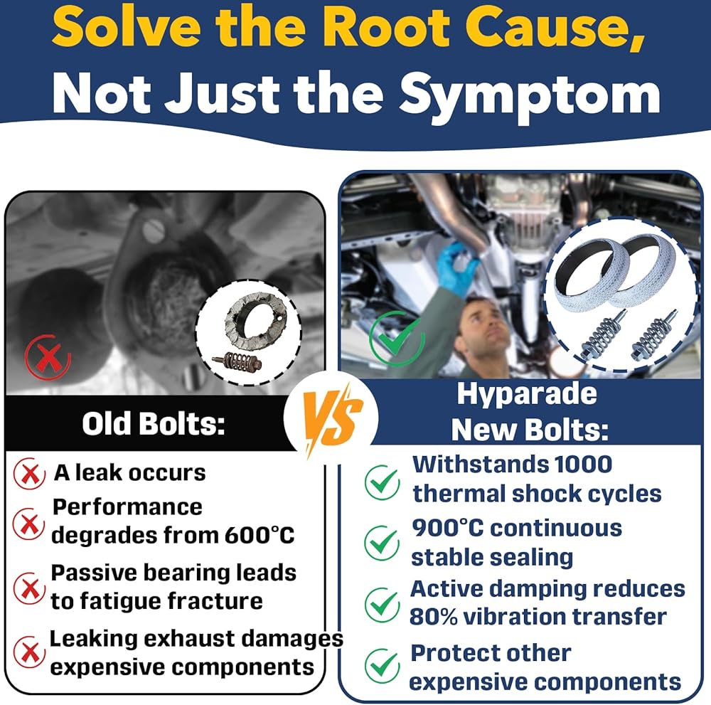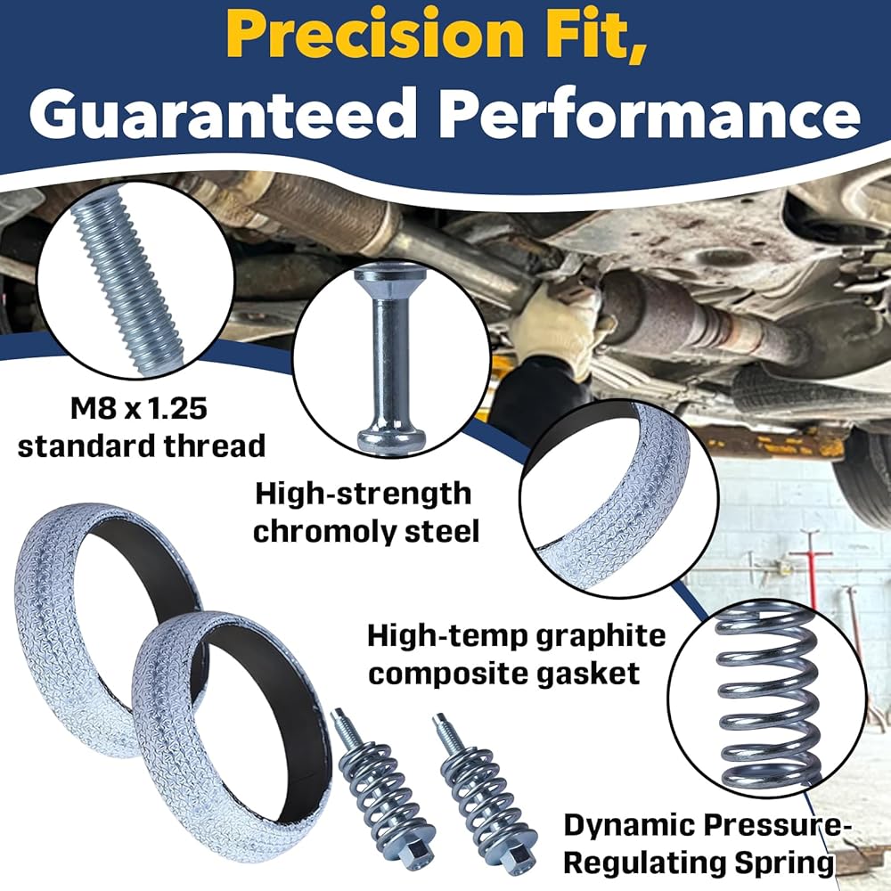 Vibration-Resistant Spring-Loaded Design:The spring-loaded bolts maintain constant tension even under high temperatures and engine vibration, reducing the risk of exhaust leaks, component cracking, and noisy operation