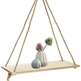 Wooden and Hemp Rope Materials: The hanging shelves are made of solid wooden boards and hemp rope. The wooden board is pretty lightweight, not something heavy like oak. It doesn't have any pattern, so if you are a creative person, you can make your Handicrafts on the board