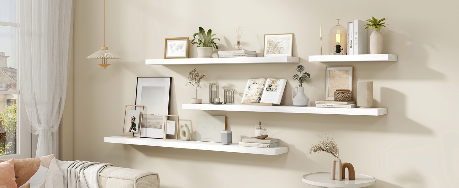 Versatile Storage and Display: Ideal for showcasing small plants, decorative objects, framed photos, and more. These shelves can be installed in a variety of spaces such as the bedroom, living room, kitchen, or bathroom, allowing you to display your favorite items while maintaining a neat and organized space.