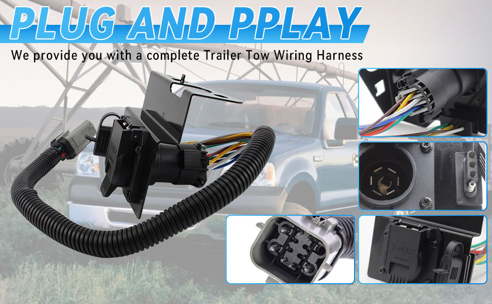 【Multi-function】Easily connect the trailer's taillights, brake lights, back-up lights, turn signals, electric trailer brakes and auxiliary power cord with the trailer towing harness.