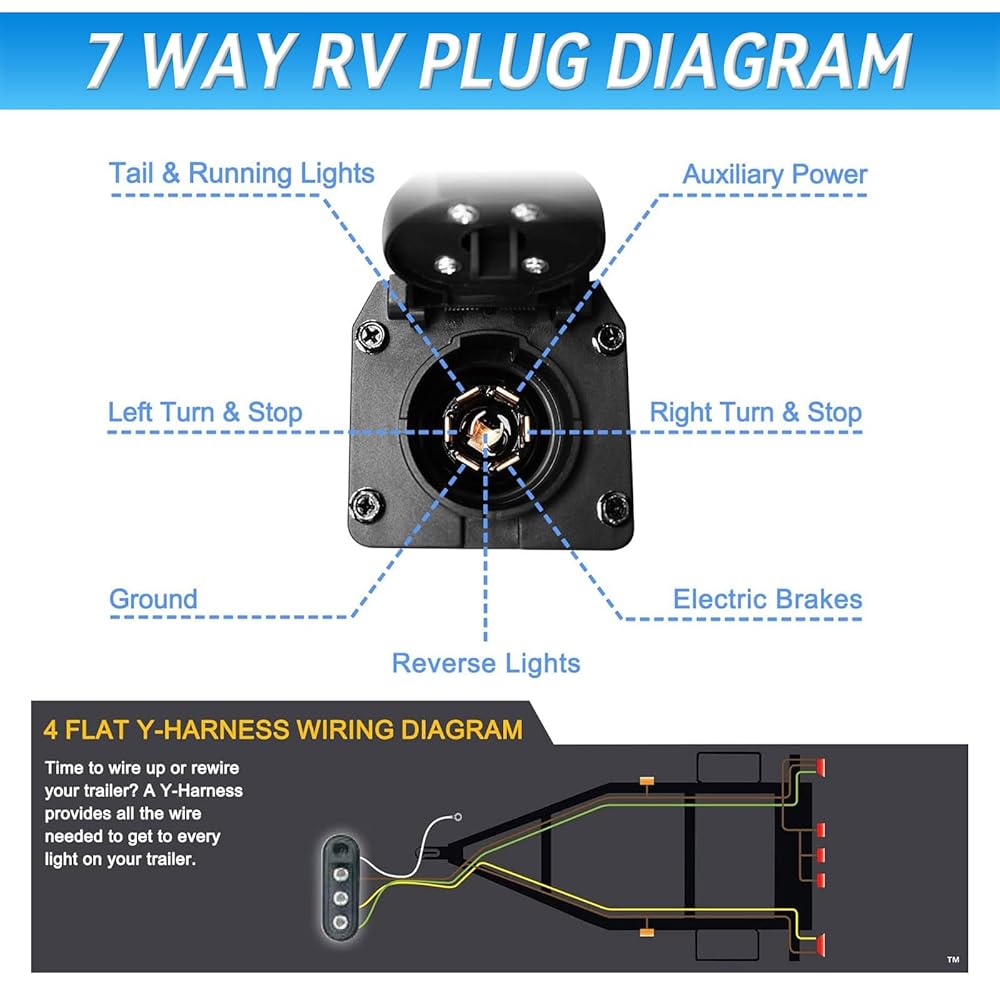 【Multi-functional and Stable Signal Transmission】 Perfectly connects trailer lighting and signaling systems, such as taillights, brake lights, back-up lights, turn signals, electric trailer brakes and auxiliary power cables through 7-pin and 4-pin connectors to achieve stable signal transmission, which effectively transmits the driving intention of the trailer and improves driving safety.