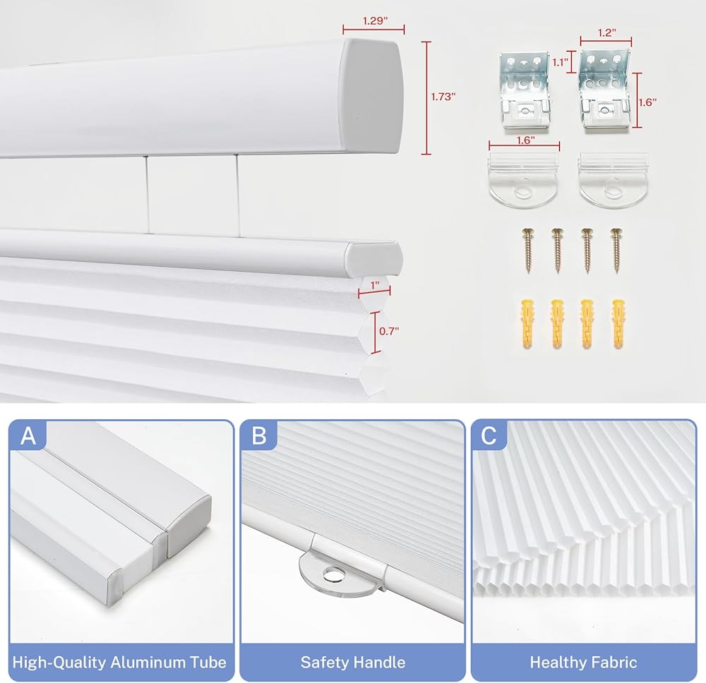 【Cellular Fabric Effect】 The 1-inch special honeycomb structure design can generate air pockets to regulate temperature, minimizing heat gain in summer and heat loss in winter, thereby achieving energy conservation and comfort. Cellular design can also absorb sound, reduce external noise, and create a peaceful atmosphere.