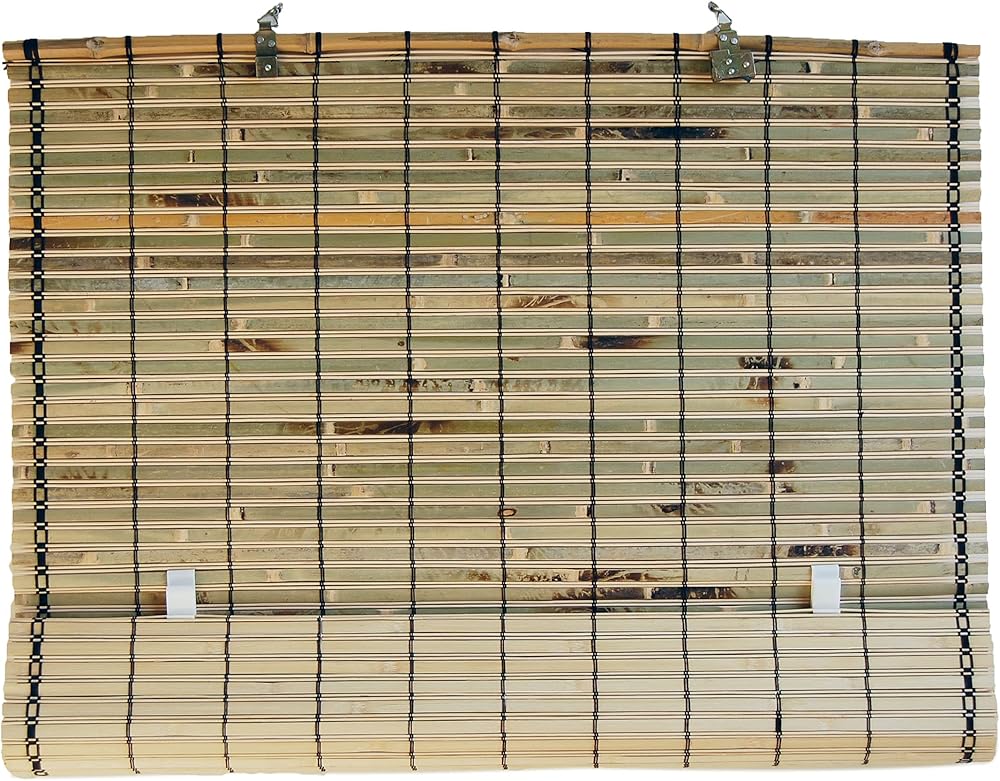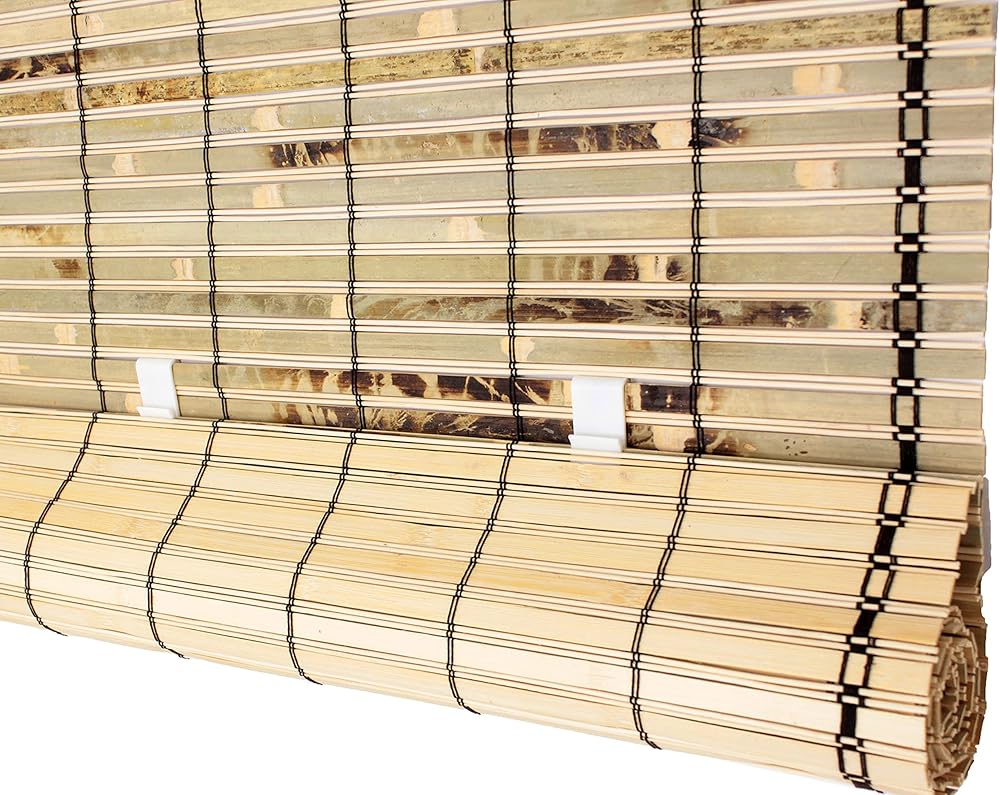 Natural tortoise-shell pattern bamboo slat weave with two natural color bamboo matchstick cordless roll up blind