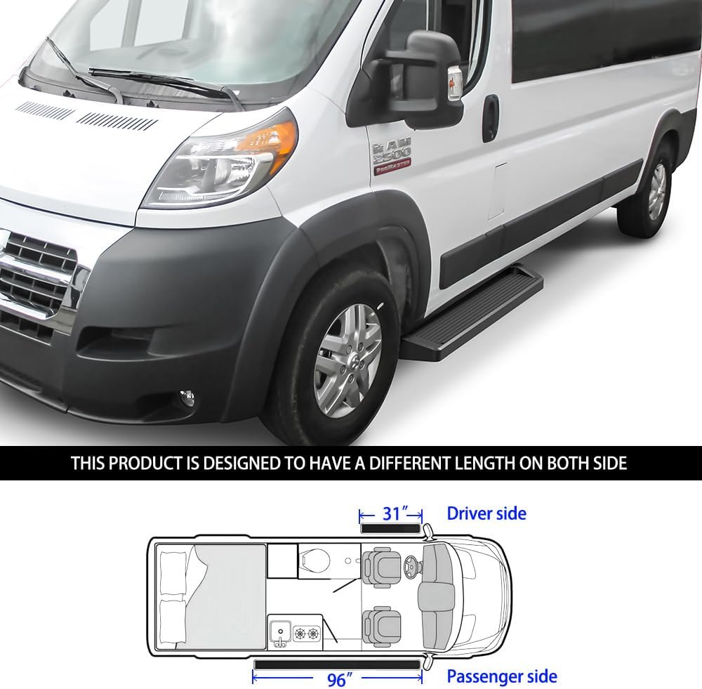Easy to install Rocker Panel Mount (Drilling Required), and Compatible with Ram ProMaster 2014-2026 Full Size Van 136 inches 159 inches Wheelbase 3-Door