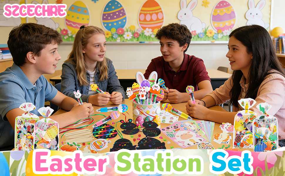 Classic Festive Easter Designs:Features joyful spring patterns: bunnies, chicks, and multicolor eggs on every item. Vibrant easter-themed colors create cheerful classroom birthday favors or party gift bags.