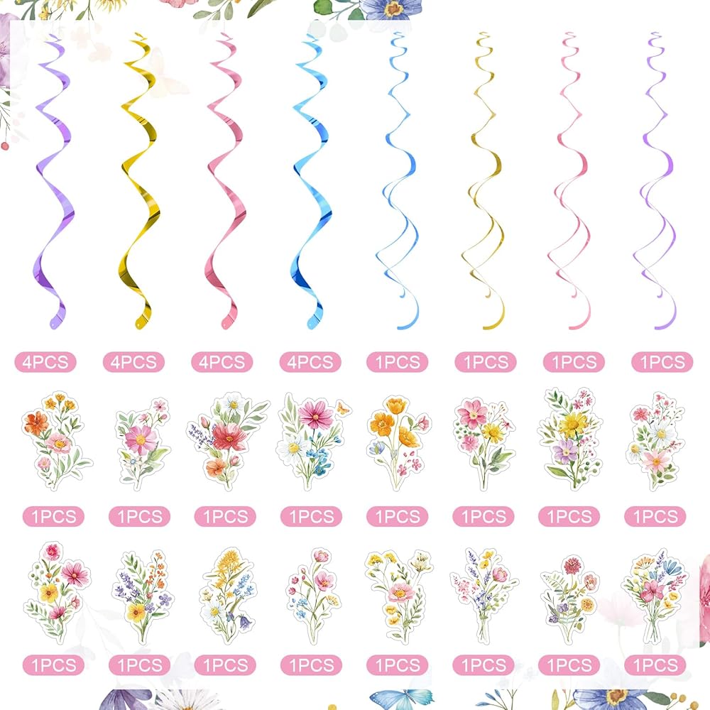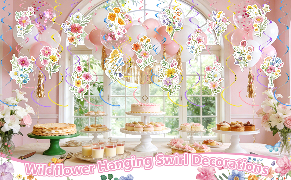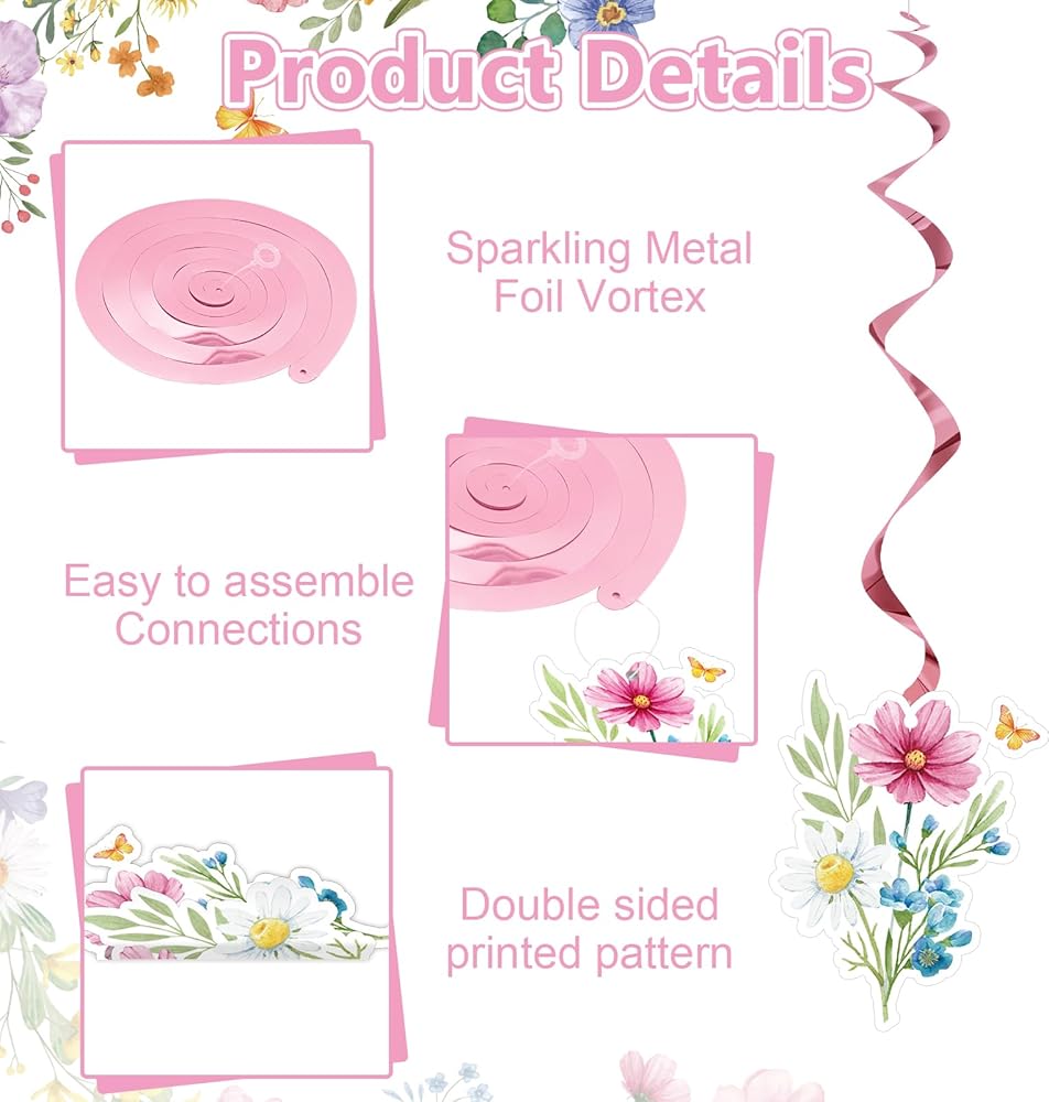 【Quality Material】Spring wildflower hanging streamers are made of high-quality metallic foil and double sided cardboard,not easy to bend, lightweight but strong,durable and reusable, carefully selected to bring a delightful atmosphere to your birthday party, baby shower , wedding, gender reveal ceremony and more.