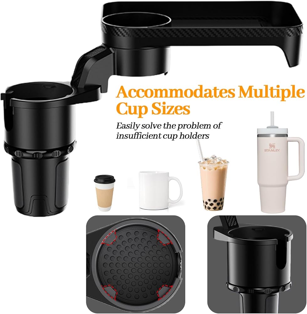 🧼【Easy Disassembly & Dual Cup Holders 】 Designed for convenience, this expander tray can be split apart for quick cleaning. It also includes two dedicated cup slots, accommodating both driver and passenger drinks simultaneously while maximizing cabin space and functionality.