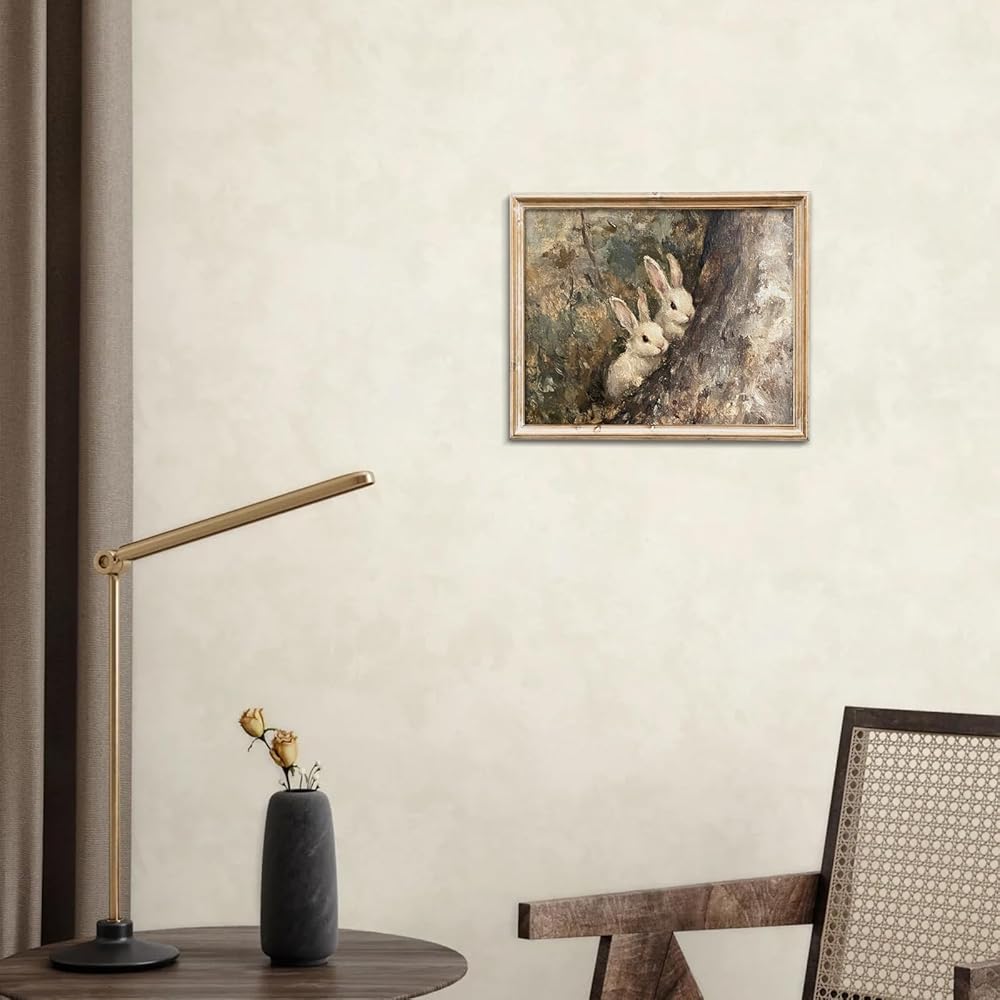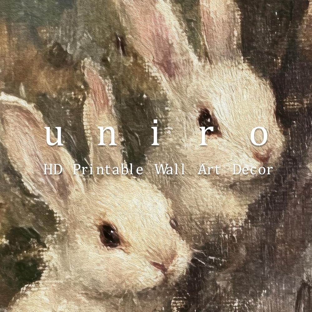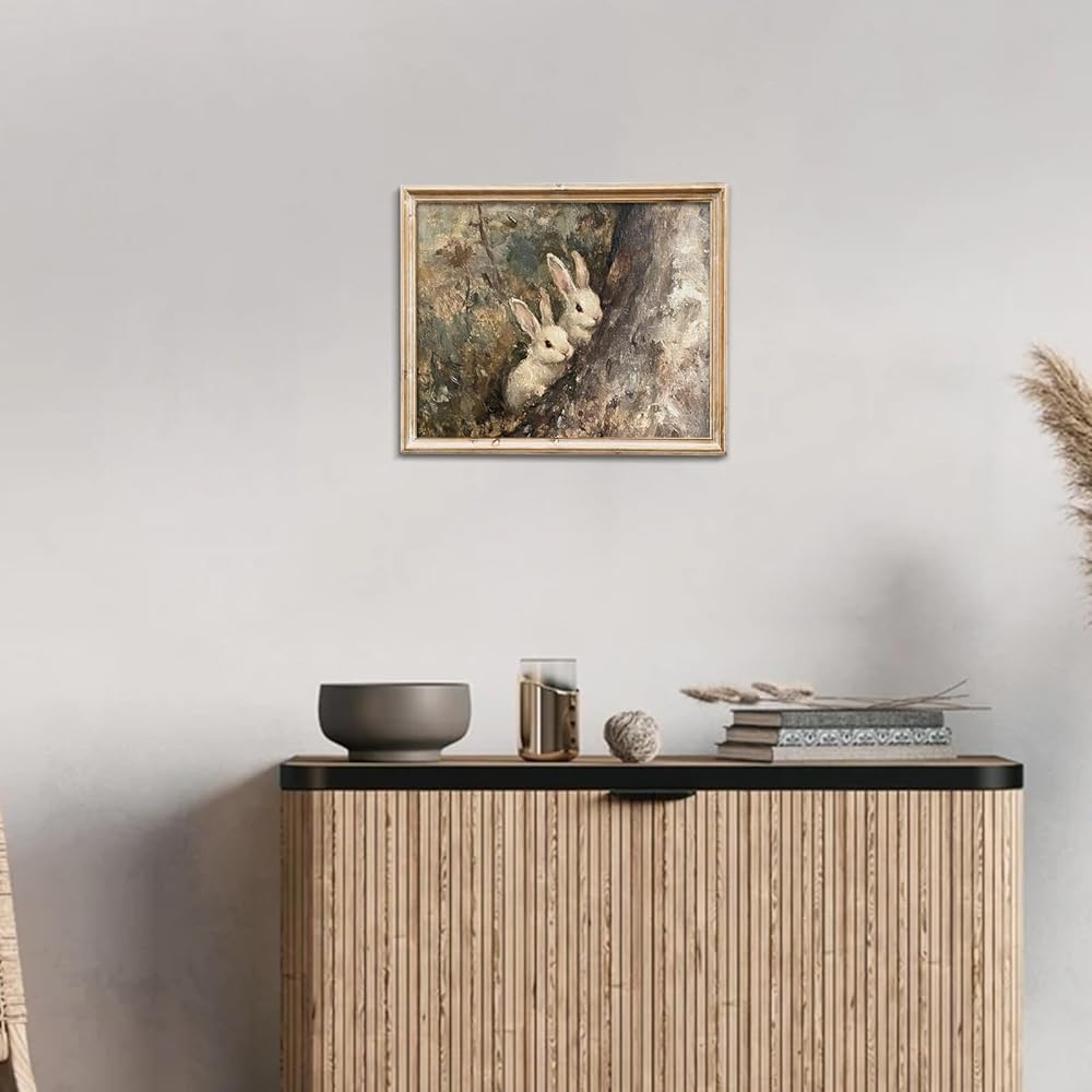uniro Vintage Easter Rabbits in the Forest Print Farmhouse Wall Art Retro Bunny Wall Art Cottage Easter and Spring Decor for Bedroom Bathroom Kitchen Holidays Decor - 8x10 Unframed