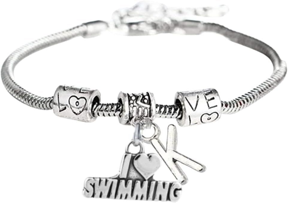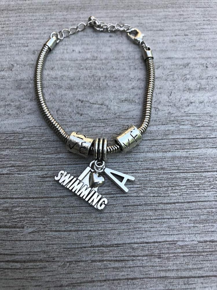 Personalized Swim Bracelet, I love Swimming Jewelry - Gift Swimmers and Swim Teams