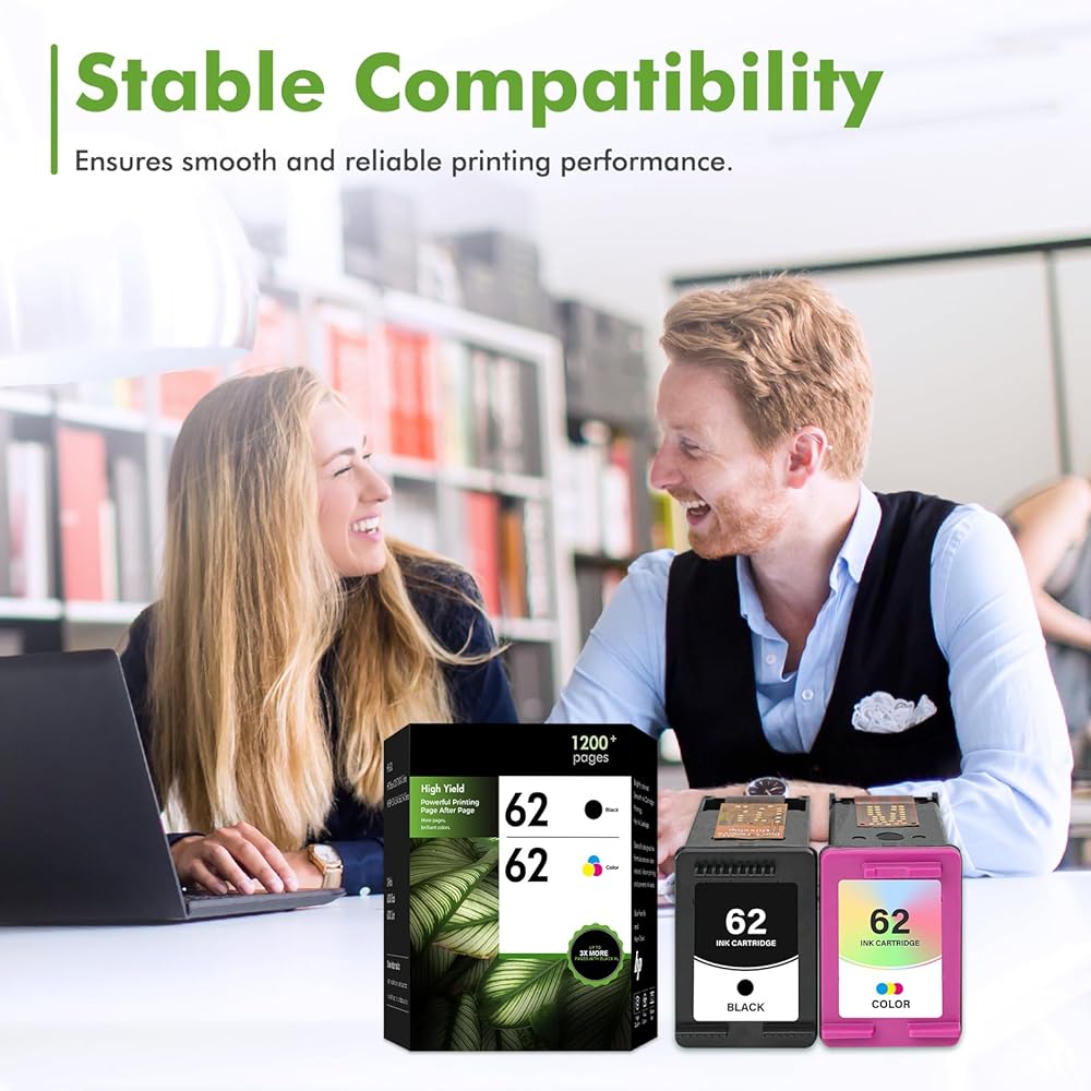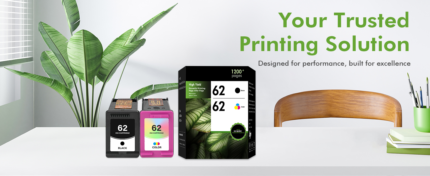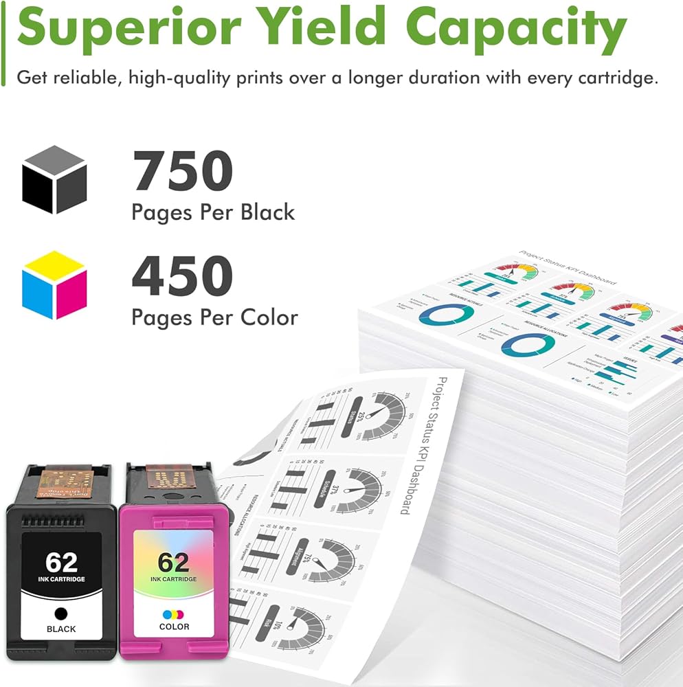 High Page Yield: It yields up to 750 pages for each 62XL 62 Black Ink and 450 pages for each 62XL 62 tricolor high yield ink cartridges at 5% coverage (A4e letter)