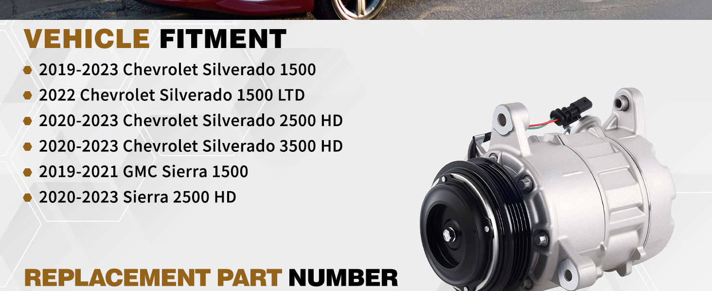 84417409 A/C Compressor with Clutch Used for Chevrolet Chevy Silverado1500 2500/3500 HD 2019-2021 GMC Sierra 1500 2019-2021, Sierra 2500/3500 HD 2020-2021 for 84417410 84877092 168343