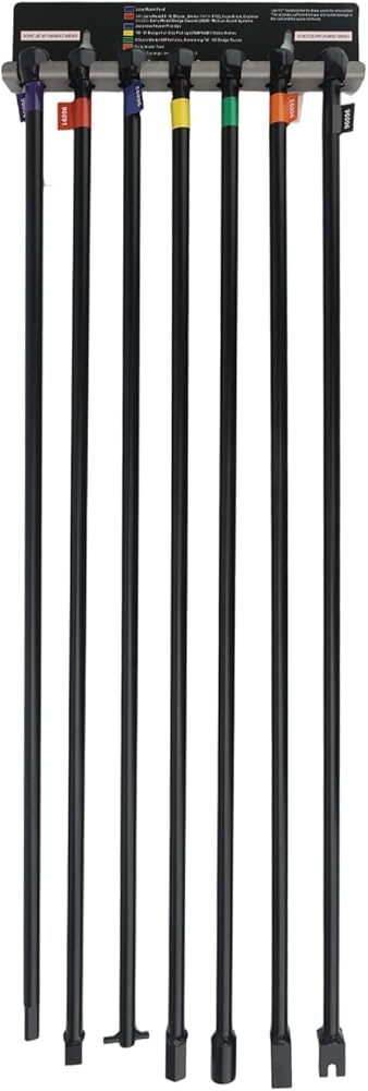 7-Piece 30" Spare Tire Removal Tool kit Compatible with Lowering & Raising Cradle-Suspended Spare Tires - Includes Flat, Pin, Hex, 12mm, ⅜, Slotted Square Heads & Mounting Bracket