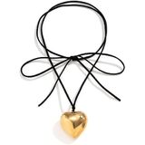 - Shape Features: Wrap-around choker with a bow-tie knot and a sculpted heart pendant on a slim black cord.
