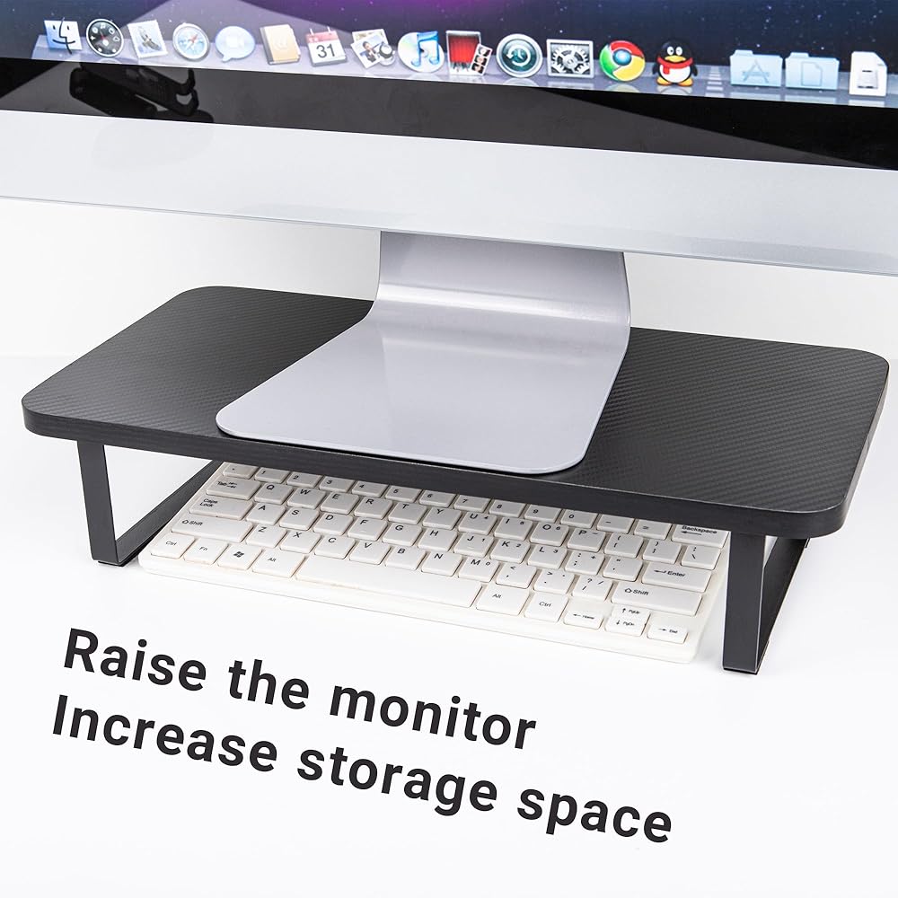 Ergonomic Lift & Storage: 3.74" height elevates screens to eye level, reducing neck strain. The open base stores keyboards/laptops, while 2 ABS shelves organize small items for a clutter-free desk.