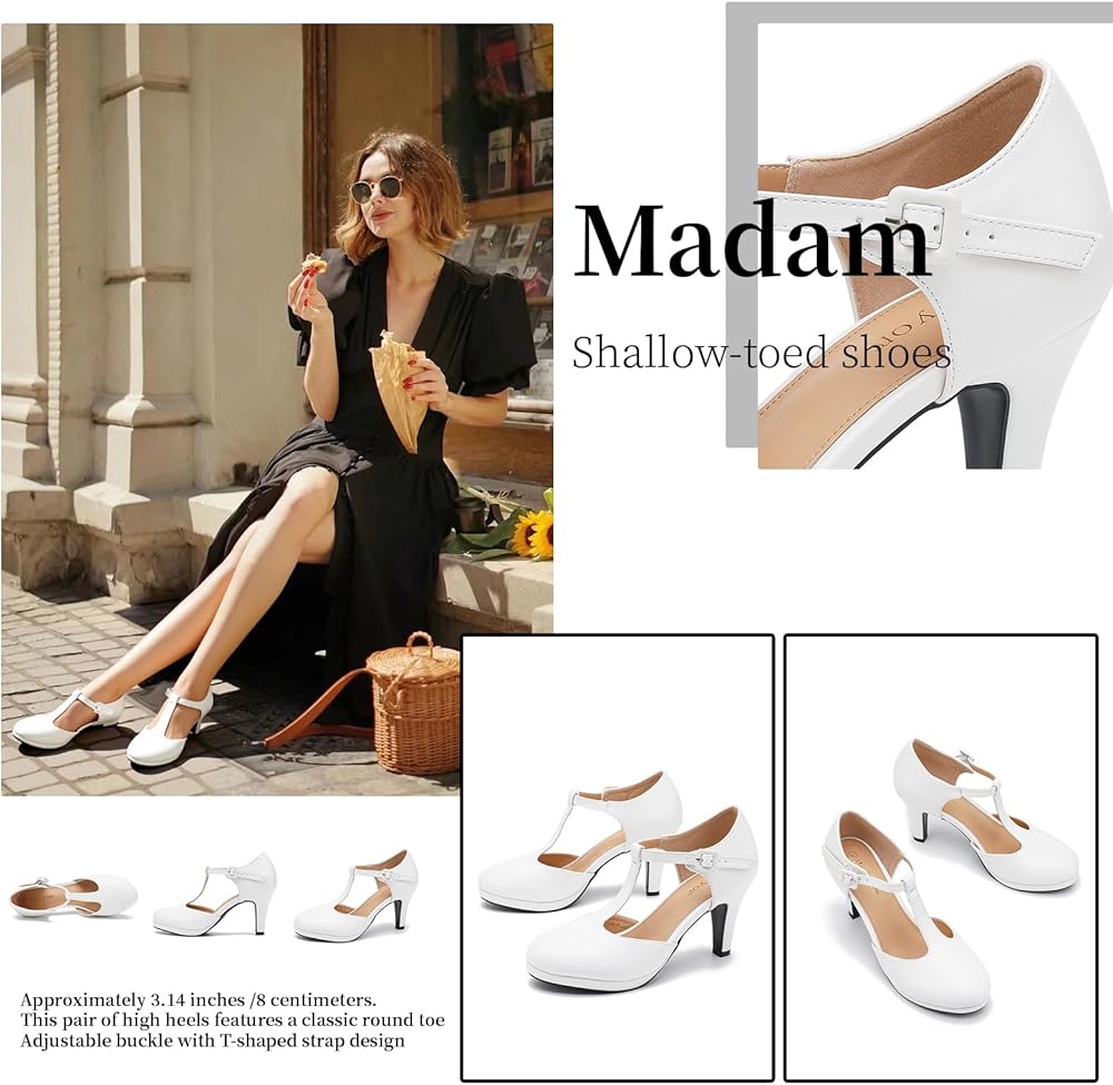 Dress Shoes for Women:These beautiful heels feature a round toe design look that is just adorable. perfectly cut out to accentuate an adorable vintage look for all your outfit needs. Featuring an adjustable ankle strap with a t-strap to keep your feet in place for a custom fit. Spice up your look and walk with style and confidence!