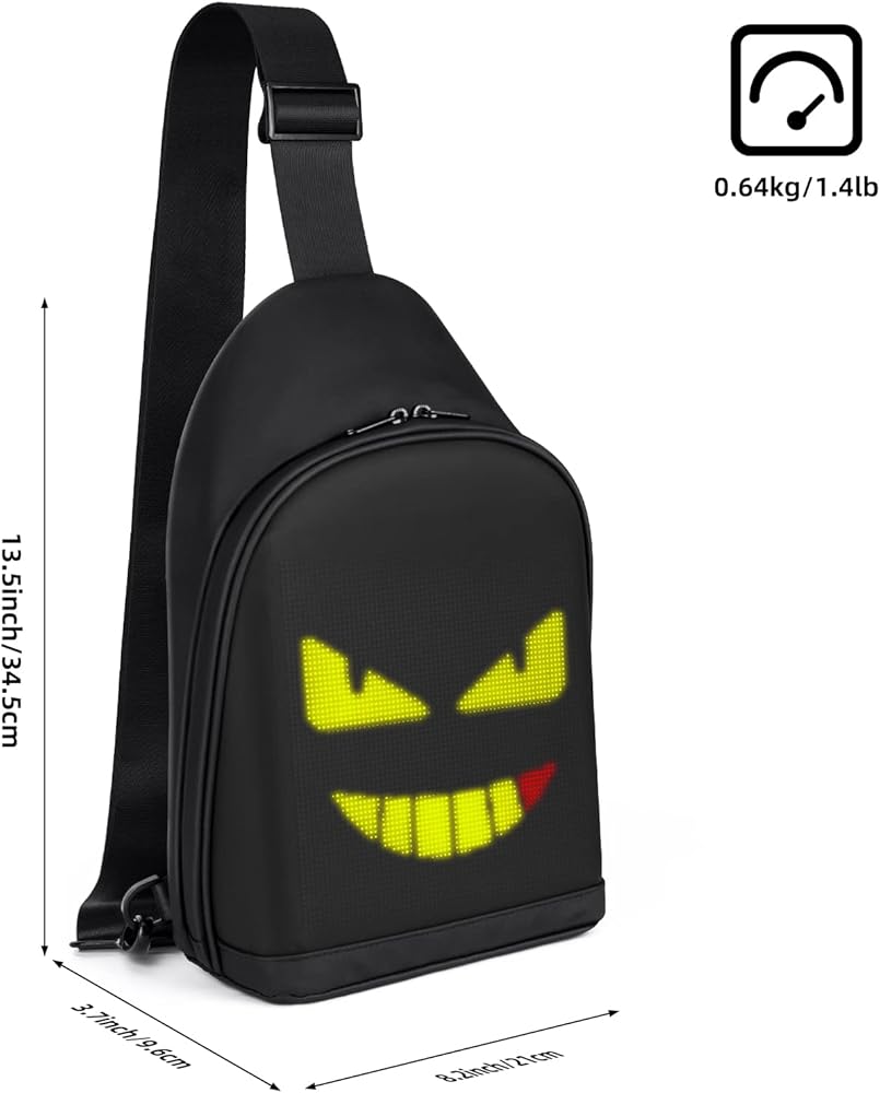 Material: This stylish backpack is made of PVC film material/TPU, 64*64 full-color dot matrix screen is waterproof, smart screen backpack has 72 resolution, supports text, picture, animation and other formats, adjustable shoulder strap size, adopted on the back Made of breathable material, it makes you feel more comfortable when traveling, hiking etc.