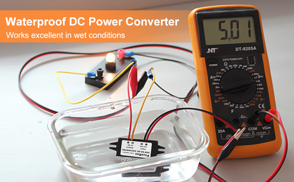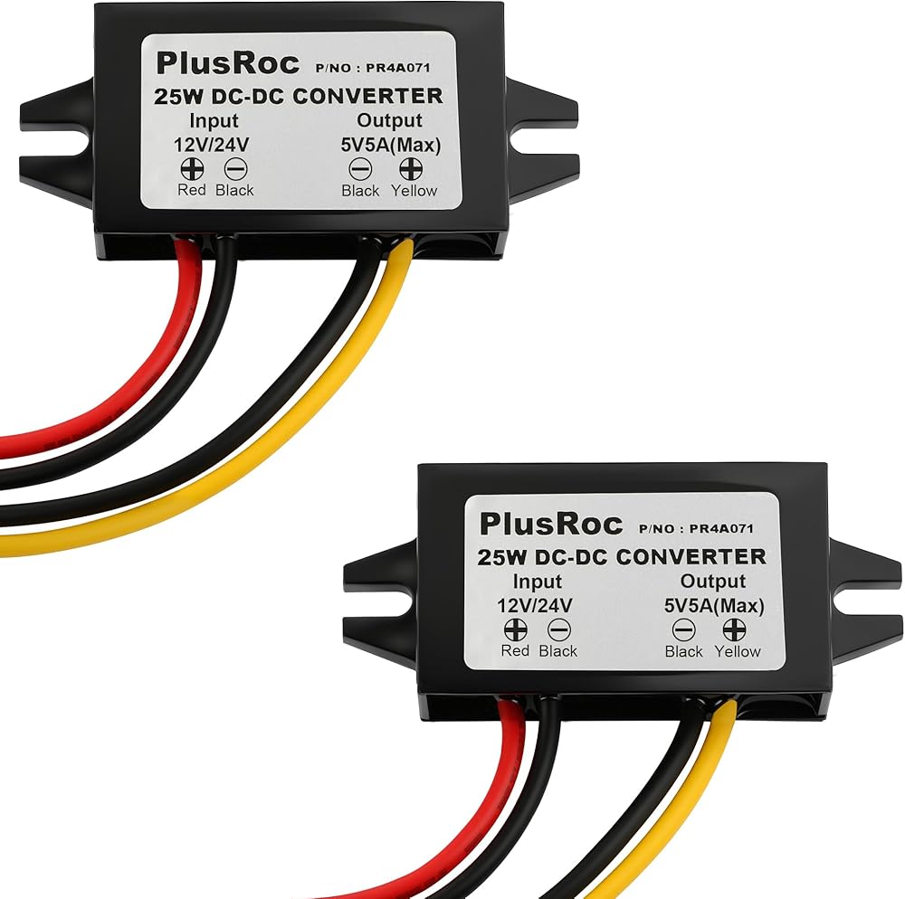 PlusRoc Waterproof 12V/24V to 5V 5A Step Down Converter, 25W DC-DC Buck Converter with Open Wires for DIY Electronics Projects (2-Pack)