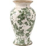Elegant Chinoiserie Design with Vintage Charm: The chinoiserie vase showcases a stunning green and white floral motif and an elegant silhouette. The handcrafted chinoiserie design blends vintage allure with timeless elegance, perfect for enhancing any room with its sophisticated, rustic appeal that complements grand millennial, Tuscan, and country chic décor styles.