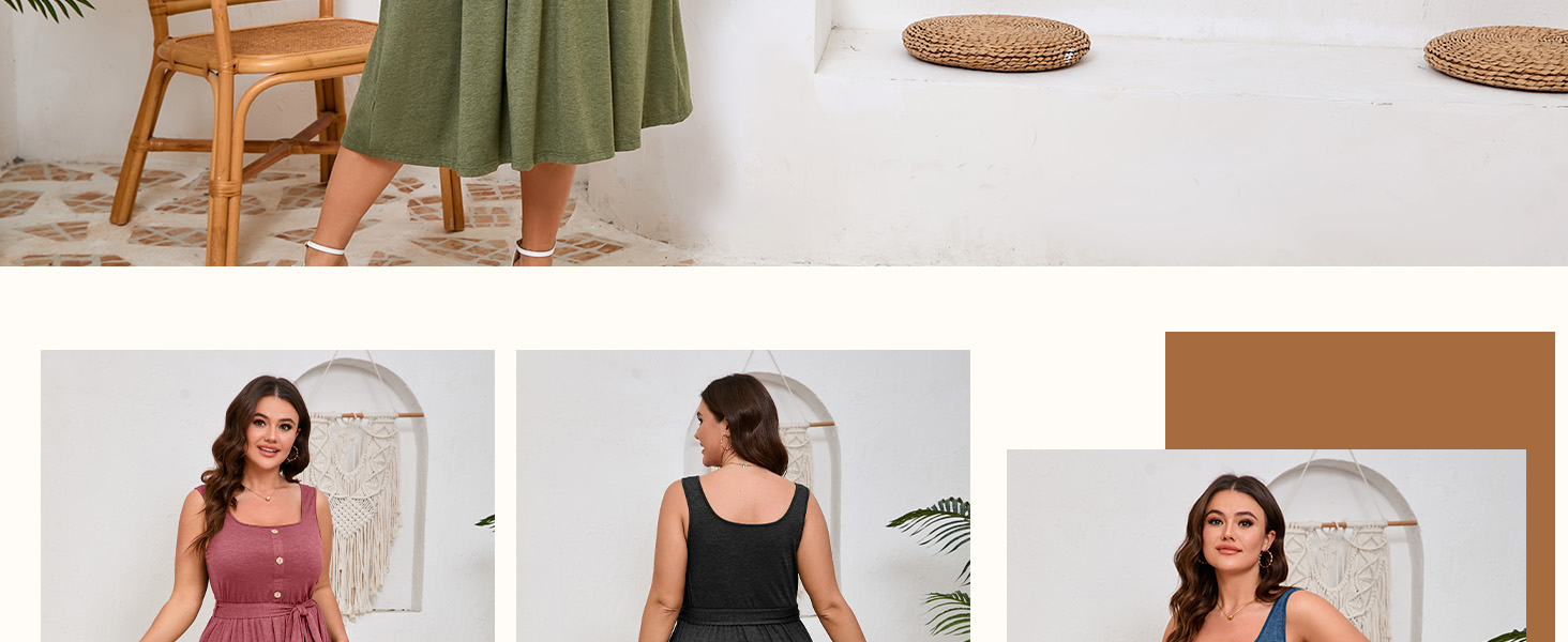 What Material We Use: Crafted from premium, lightweight fabric, the Women's Plus Size Square Neck Midi Dress ensures both comfort and durability. The material is soft to the touch and highly breathable, keeping you cool and comfortable throughout the day