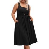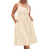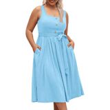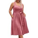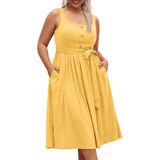Dress Chic Design: Designed with a decor button square neckline, this dress exudes elegance and sophistication. The sleeveless design and A-line cut provide a comfortable, breezy feel.The pleated and belt detailing adds a touch of texture and movement