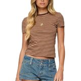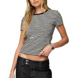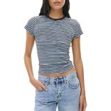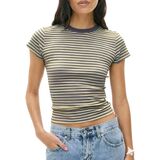 Package: 1xY2k Baby Tees Crop Tops for Women Short Sleeve Fitted T Shirts Striped Patchwork Basic Cute Crewnecks 90s Going Out