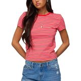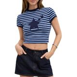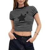 Y2k Baby Tees Crop Tops for Women Short Sleeve Fitted T Shirts Striped Patchwork Basic Cute Crewnecks 90s Going Out