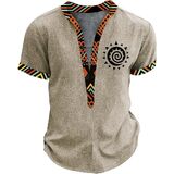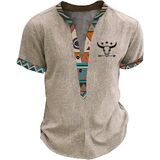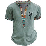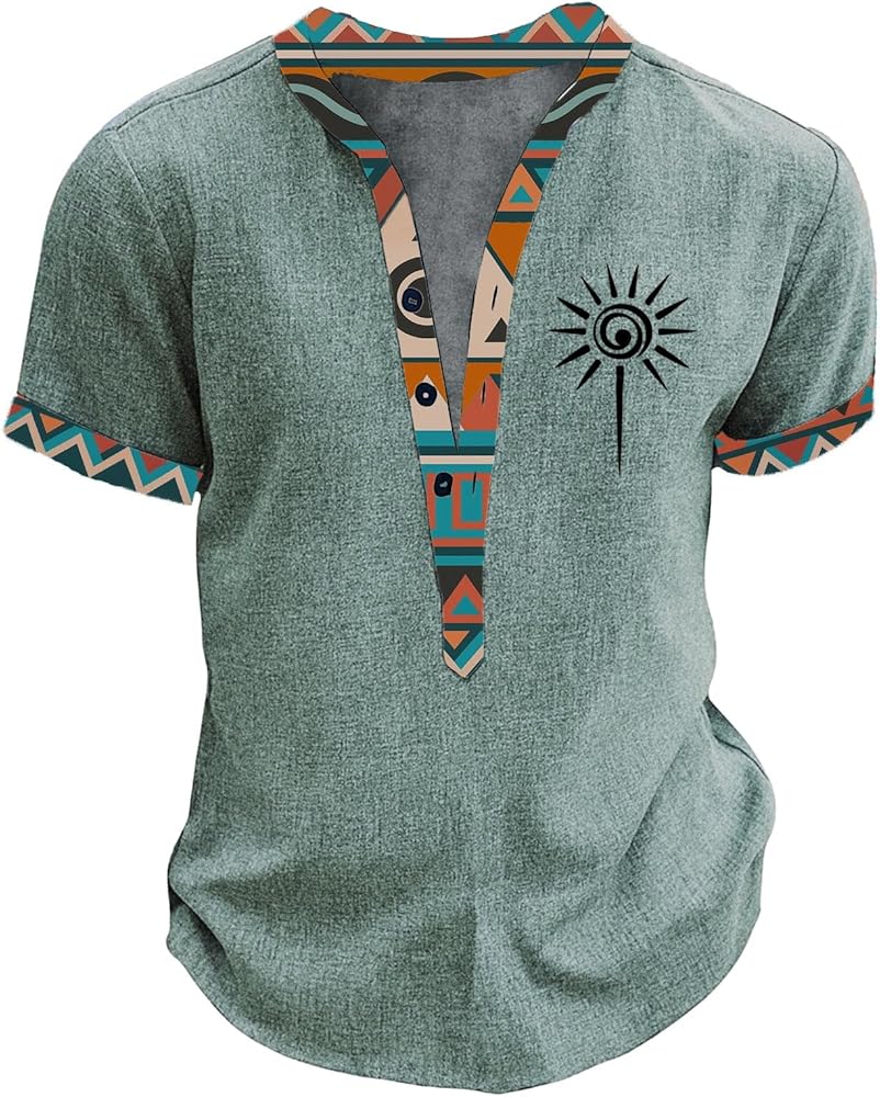 【Features】:Men's casual button down shirt with floral vintage print on banded collar and cuffs,v neck, simple style, short sleeves, slim fit, six-button front placket design, stylish pattern on chest, easy to put on and take off, suitable for most body types.