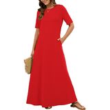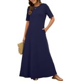 Chic & Effortless Design: Features a classic round neck (crew neck), short sleeves, and a flattering ankle-length cut. This pull-on maxi dress is simple yet stylish, making it easy to put on and go. It serves as the perfect foundation to accessorize with various jackets, shoes, jewelry, hats, and handbags.