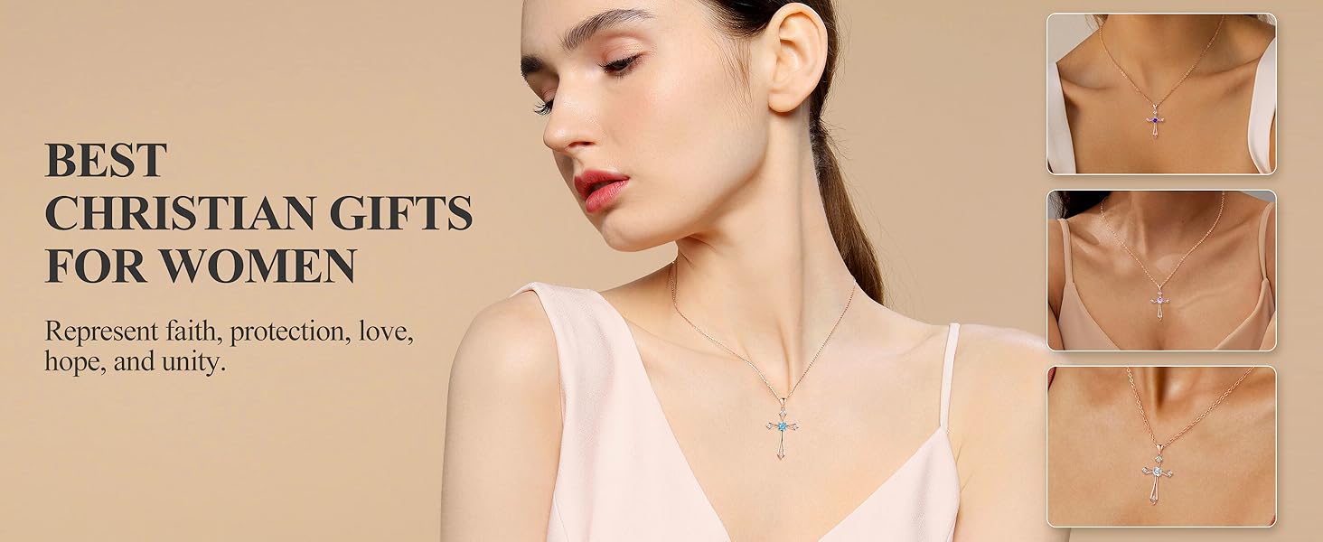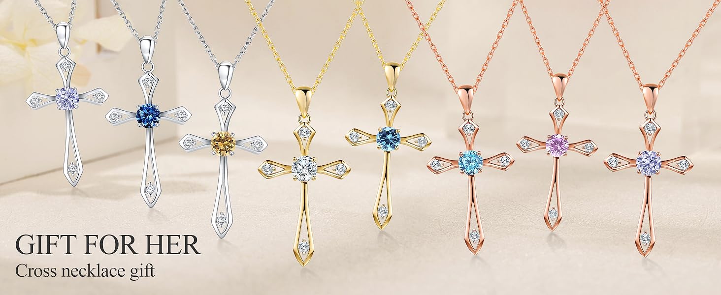 .Dainty Sterling Silver Cross Necklace :This danity cross necklace is designed for women , it is simple and classical.The cross pendant with beautiful birthstone is elegant and gorgeous,keep your faith close to your heart, bring you the Peace, Hope, Vitality, Strength and Love. The cross guides the direction,indicating a bright future,offers spiritual healing by sending birthday stones,make it as a perfect gifts for women or yourself.