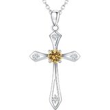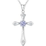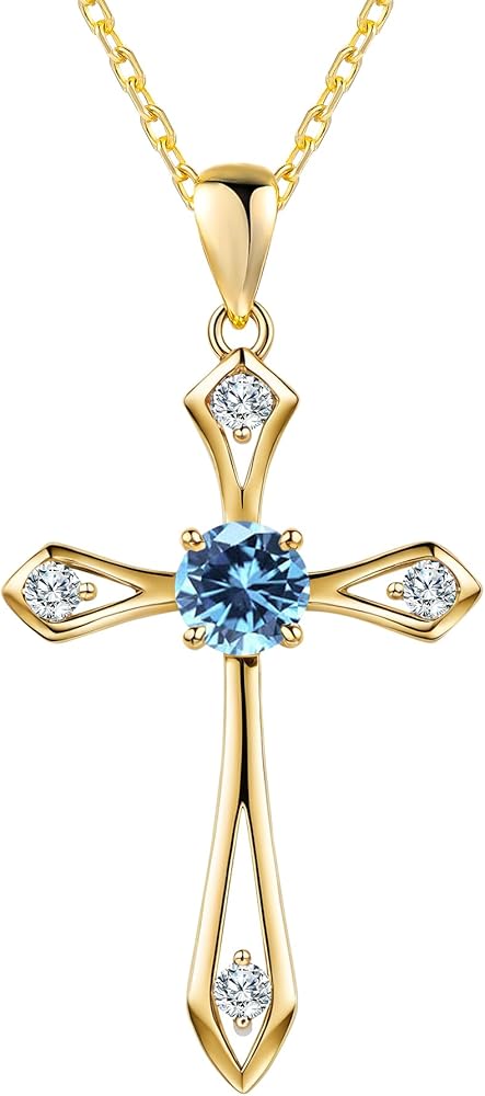 Cross Birthstone Necklace for Women: This elegant 925 sterling silver women's birthstone necklace is made of S925 sterling silver with high cost Rhodium surface. High polished with 5A simulated brilliant diamond-cut aquamarine birthstone design.Cross necklace pendant measures 1.12''*0.74''(28.5mm*18.7mm). Chain Length is 17.7"+2"(45cm+5cm) for adjustable with lobster claws. It is lightweight but delicate, sits comfortably around the neck.