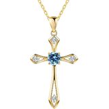 Aquamarine-March Birthstone Necklace for Women: March birthstone is aquamarine, which symbolize Bravery & Happiness & Longevity. This gentle blue aquamarine birthstone cross necklace flashes freely as wearer moves, it adds more elegance to your looks.