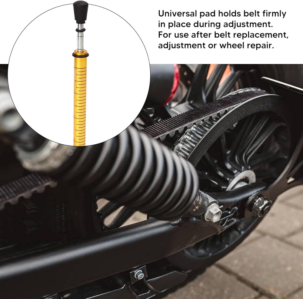 L-Shaped Pad: Motorcycle belt tension tool is equipped with an L-shaped pad. When adjusting your belt tension, belt gauge tool can help you firmly fix belt in the preset position and appropriately reduce friction when tightening belt