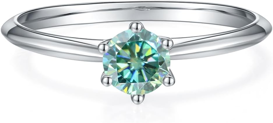 White/Pink/Yellow/Green/Black/Blue Moissanite Rings Wedding Promise Ring for Women 18K White Gold Plated 925 Sterling Silver 6.5mm Moissanite Halo Engagement Rings Christmas Gifts for Her(Size 5-10)