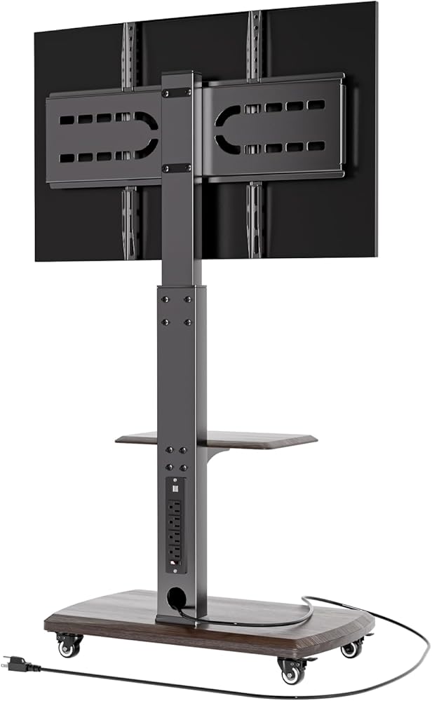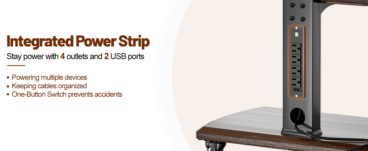 Hidden Cable Management: The TV cart features a built-in power outlet, including 2 USB ports (5V/2A), 4 AC outlets (120V/12A) and 6.5ft power cord, which can power multiple devices and keep cables organized. The button switch is designed to effectively prevent accidents