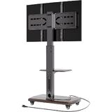 Rolling TV Stand with Power Outlet, Moveable TV Cart with Shelf for 32 to 80 inch TVs up to 131lbs, Height Adjustable, Portable Mobile TV Stand on Wheels for Living Room, Bedroom, Office, Brown