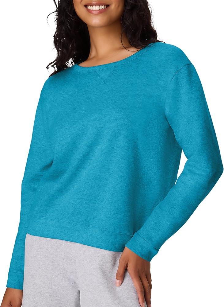 Stay comfy on the go with our unbelievably soft, thick sweatshirt for women. Perfect for year-round wear, this mid-weight women's pullover makes your studio-to-street style effortless and easy. Soft, plush fabric is reinforced with a high-stitch density, so this sweatshirt can be a longtime favorite. Classic silhouette gives you versatility, while ribbed details at the collar, cuffs, and waistband stretch to keep you comfortable. Longer length sits below your natural waistline to give you more coverage for confidence, in and out of the studio. Tagless neck limits distractions, so you can stay itch-free no matter the activity. Feel good about your choice knowing it's made with EcoSmart™ cotton sourced from American farms. Throw these sweats in the washer on cold water wash and tumble dry low for easy laundering. Love this Hanes® sweatshirt for women? Grab one in every color to maximize your style options.
