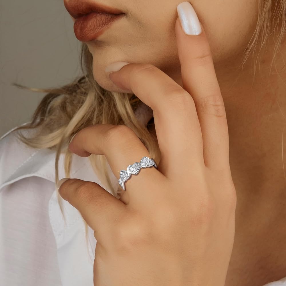 Multiple Occasions: This irregularly arranged silver love heart rings is more than just a silver rings, this piece is a symbol of enduring love and affection. it can be worn as an engagement ring, promise ring, Valentine's Day gift, friendship ring and is also one of the ideal gift choices for wedding anniversaries.