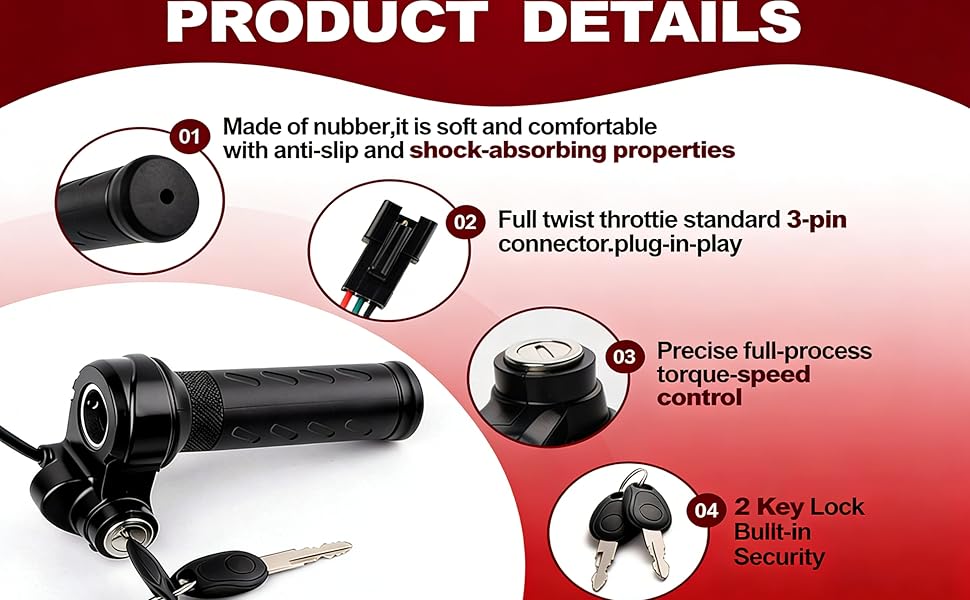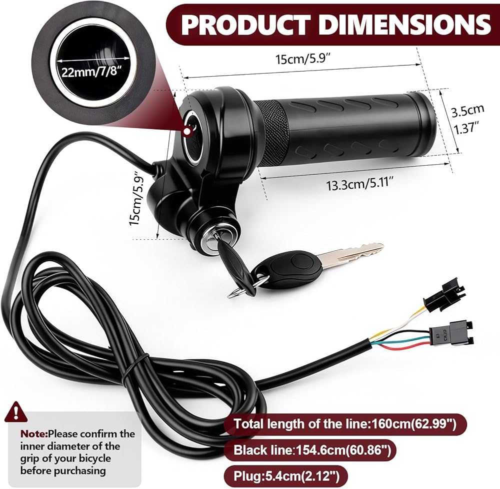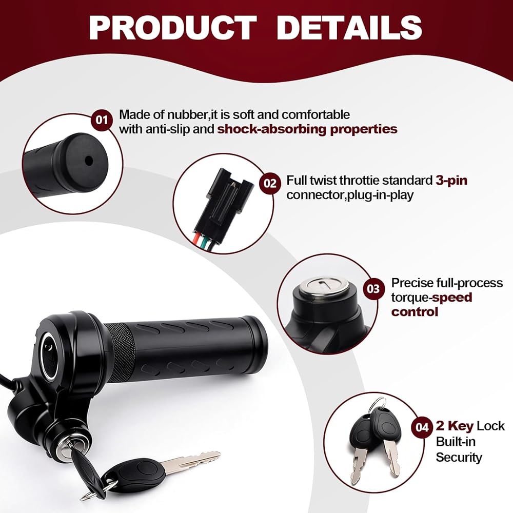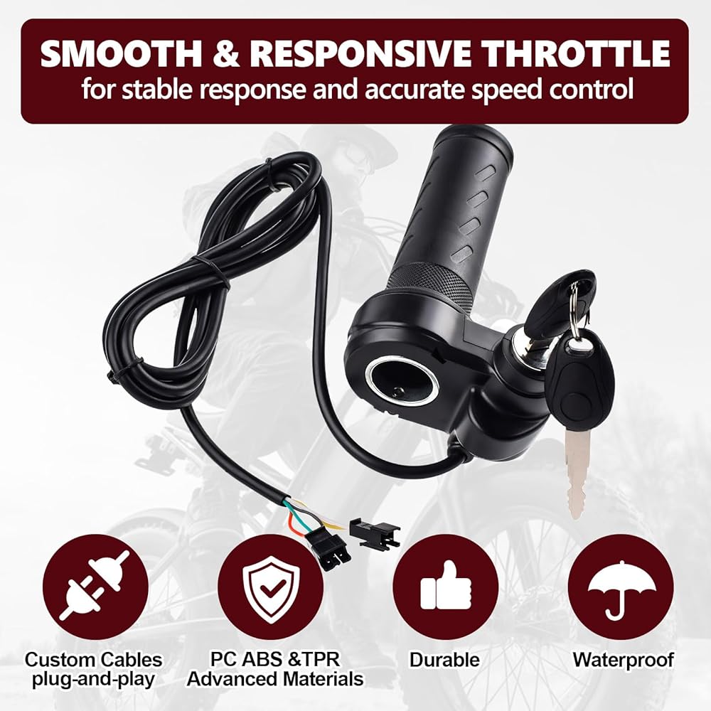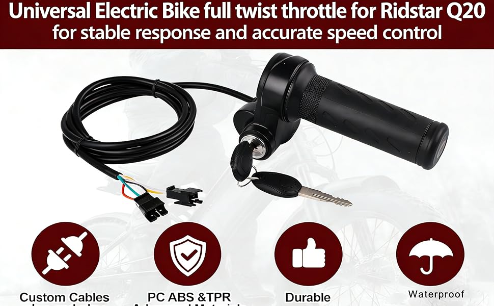 Ridstar Q20 Full Twist Throttle,3-Pin Plug and Play with 2 Keys,Universal Electric Bike Throttle Grip for Ridstar Q20/Q20Lite /Q20Pro/H20/H26 Pro/H20 Pro Most Ebikes,Motorcycles,Scooters