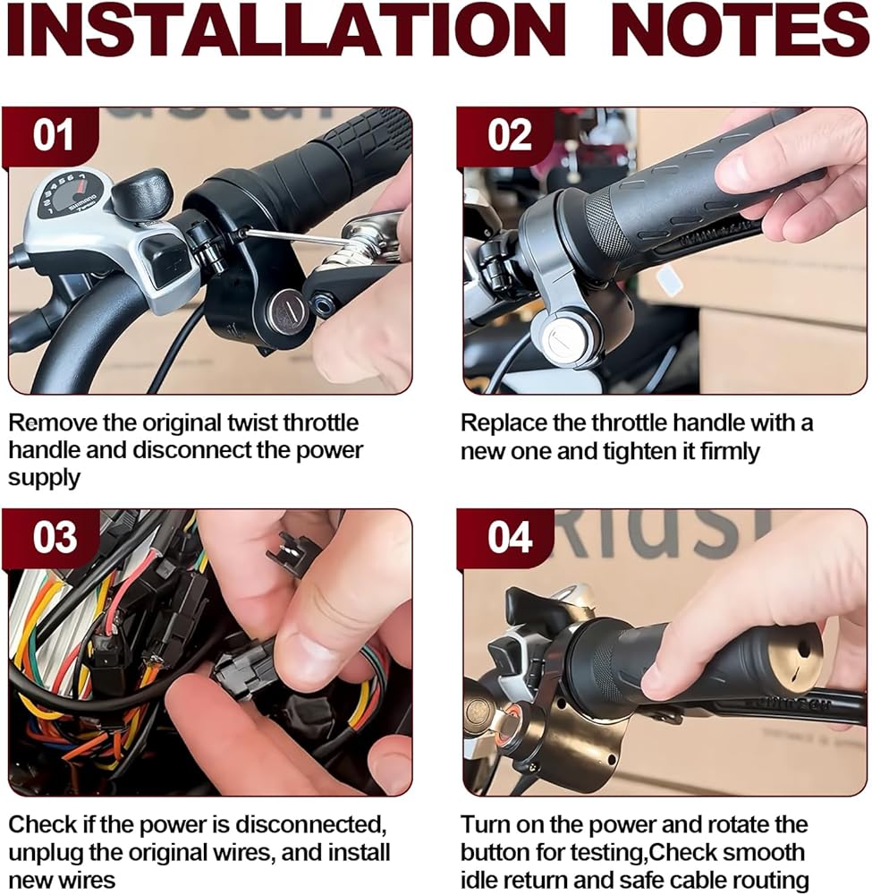 Precise speed control: Universal Electric Bike Throttle Grip is equipped with highly sensitive Hall sensors, enabling smooth acceleration with ease. It can precisely control the vehicle speed during city cruising, daily commuting, and off-road riding, ensuring smooth and stable throttle control under any riding conditions
