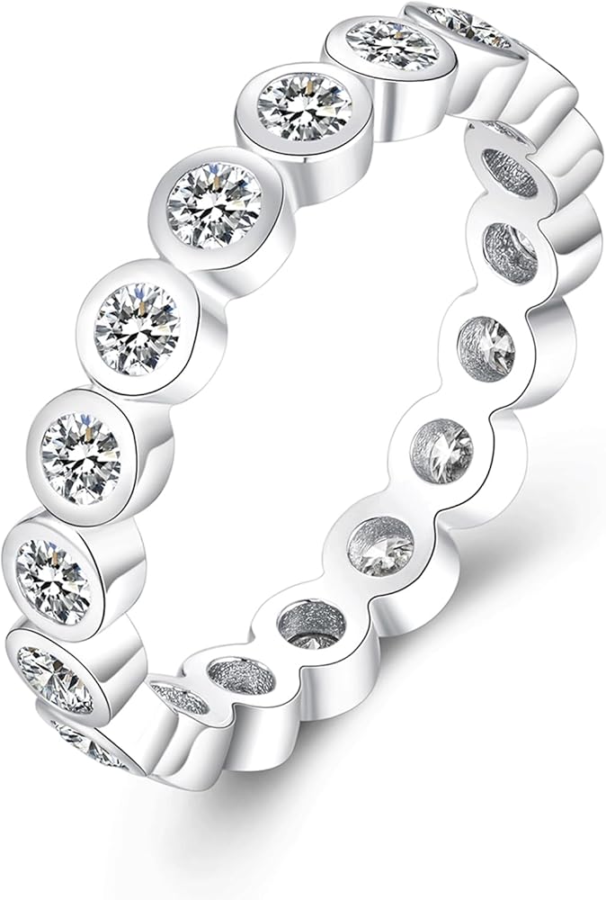 【Safe material】These silver rings for women are made of 925 sterling silver and 18K white gold plated. It is 100% hypoallergenic, lead-free and nickel-free. Bezel stackable wedding band rings won't make your skin turn green, red and inchy.